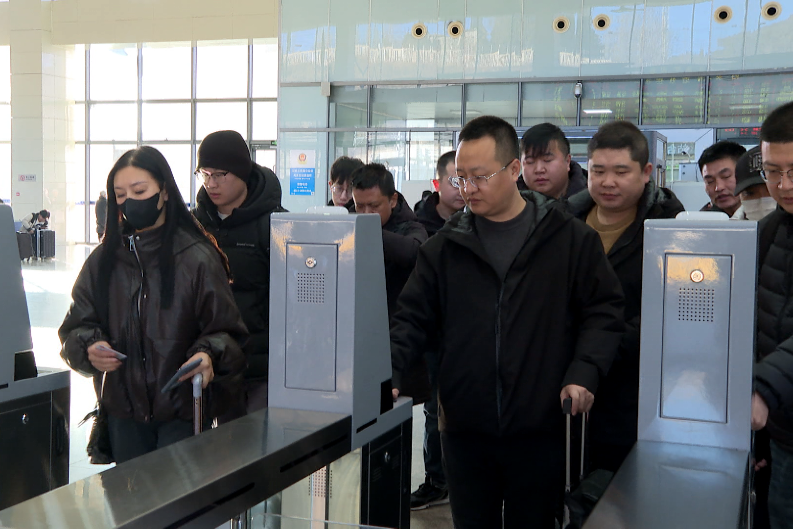 记者在阳泉北站候车大厅看到,出行及返乡旅客在工作人员的引导下有序排队检票,通过闸机。为应对客流高峰期,2条安检通道采用合理布局并升级智能设备,有效提升识别能力和安检效率,每小时可处理400名旅客的进站。